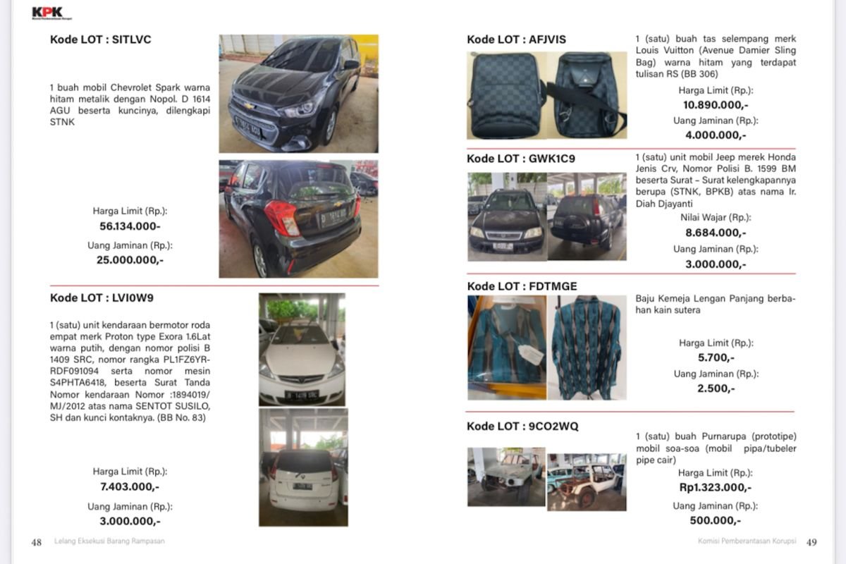 Berdasarkan informasi di laman resmi KPK, barang yang dilelang terdiri dari berbagai kategori.