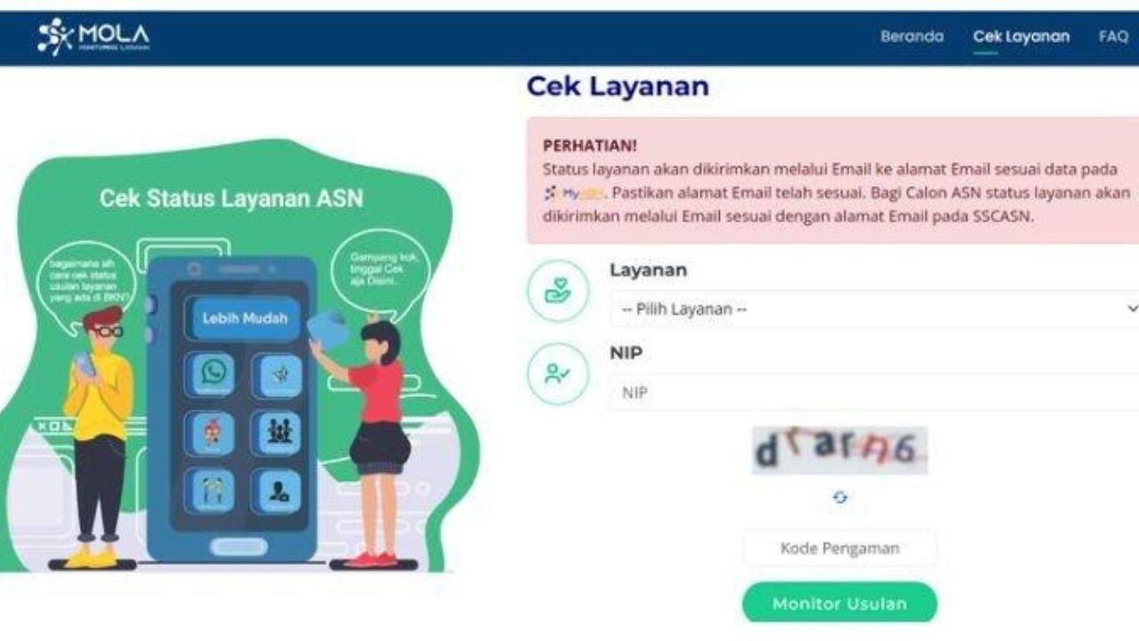 TAJUKNASIONAL.COM Peserta seleksi Pegawai Pemerintah dengan Perjanjian Kerja (PPPK) paruh waktu kini bisa memantau proses penetapan Nomor Induk Pegawai (NIP) secara mandiri melalui sistem Mola BKN (Monitoring Layanan ASN).