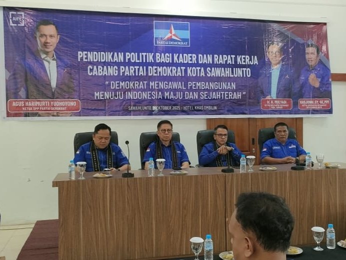 TAJUKNASIONAL.COM Dewan Pimpinan Cabang (DPC) Partai Demokrat Kota Sawahlunto menggelar Pendidikan Politik dan Rapat Kerja Cabang (Rakercab) di Khas Ombilin Hotel, Minggu (12/10/2025).