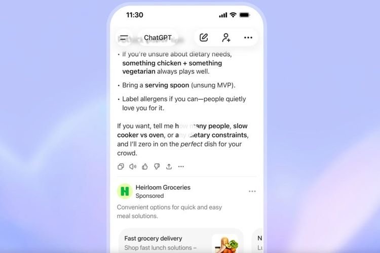 Berdasarkan tangkapan layar yang beredar, iklan muncul di bagian bawah antarmuka percakapan, setelah ChatGPT menampilkan jawaban, dan diberi label jelas sebagai konten bersponsor.