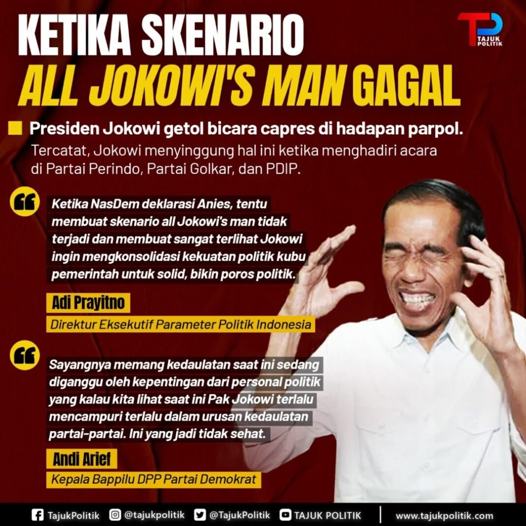Kegetolan Jokowi menimbulkan persepsi jika Jokowi pada Pilpres 2024 mendatang membuat skenario dengan menciptakan All Jokowi’s Man.
