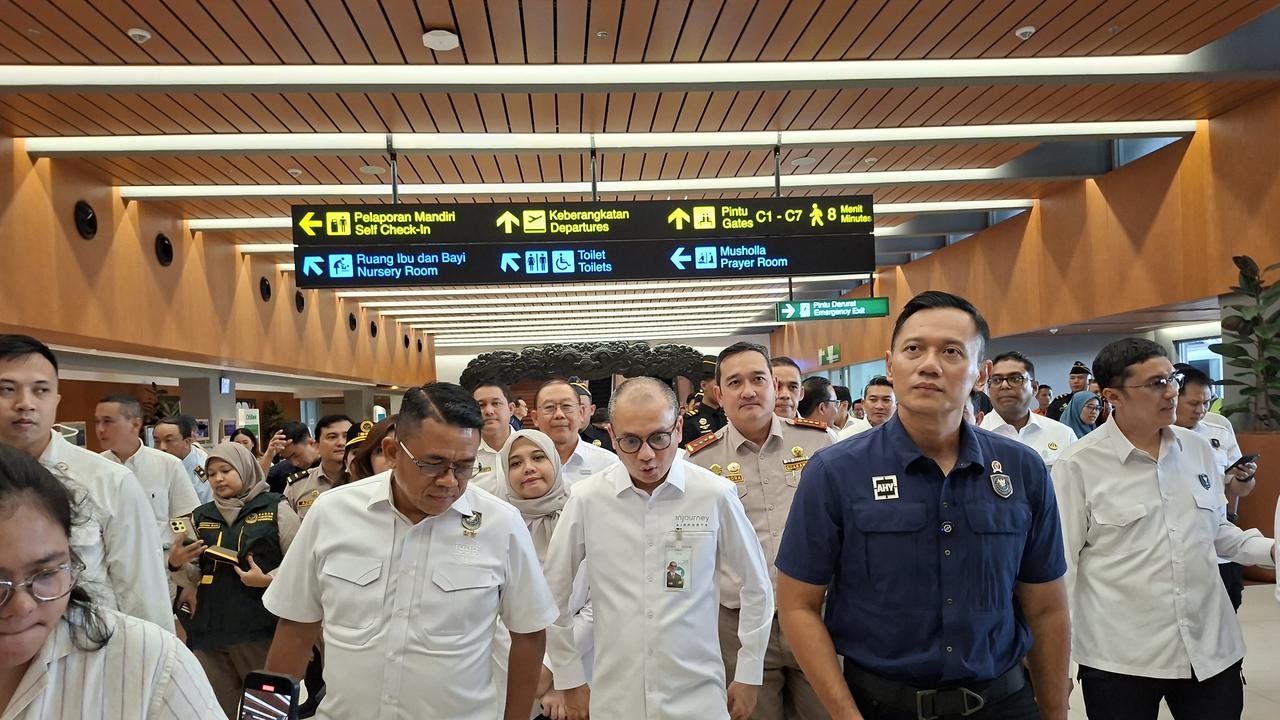 Selain memantau proses check-in dan boarding, AHY juga meninjau kesiapan petugas keamanan dan layanan penumpang di bandara.