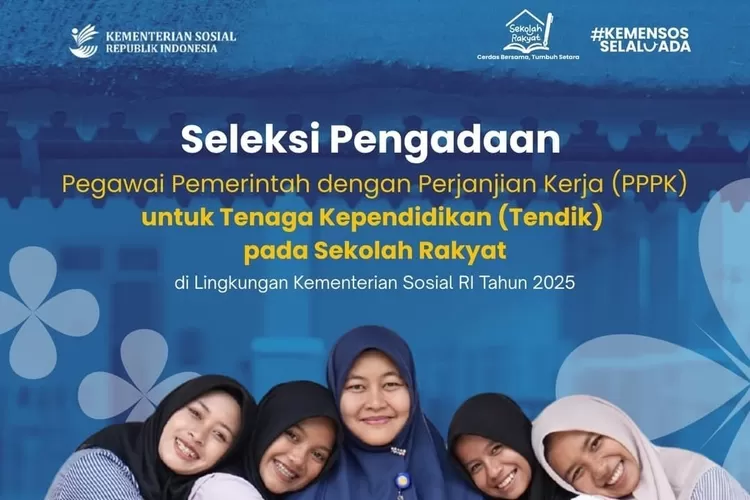 TAJUKNASIONAL.COM Kementerian Sosial (Kemensos) resmi membuka pendaftaran Seleksi Pengadaan Pegawai Pemerintah dengan Perjanjian Kerja (PPPK) untuk formasi Tenaga Kependidikan Sekolah Rakyat Tahun 2025.