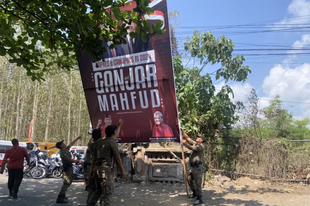 Tajukpolitik – Penjabat (Pj) Gubernur Bali, Irjen (Purn) Made Mahendra Jaya, menginstruksikan Satuan Polisi Pamong Praja (Satpol PP) untuk menertibkan baliho bergambar Ganjar Pranowo-Mahfud Md di beberapa lokasi di Bali, Selasa (31/10).