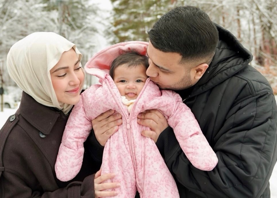 Foto-foto tersebut menampilkan Miskah dan Yislam berpose bersama putri mereka dengan latar pemandangan bersalju khas musim dingin di Jepang.