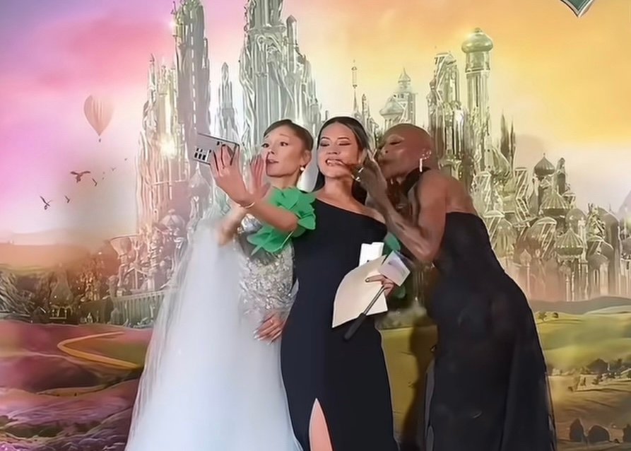 Sementara itu, Ariana Grande tampil dalam gaun perak bernuansa abu-abu, dan Cynthia Erivo memilih busana hitam penuh yang mencerminkan karakter kuatnya dalam film.