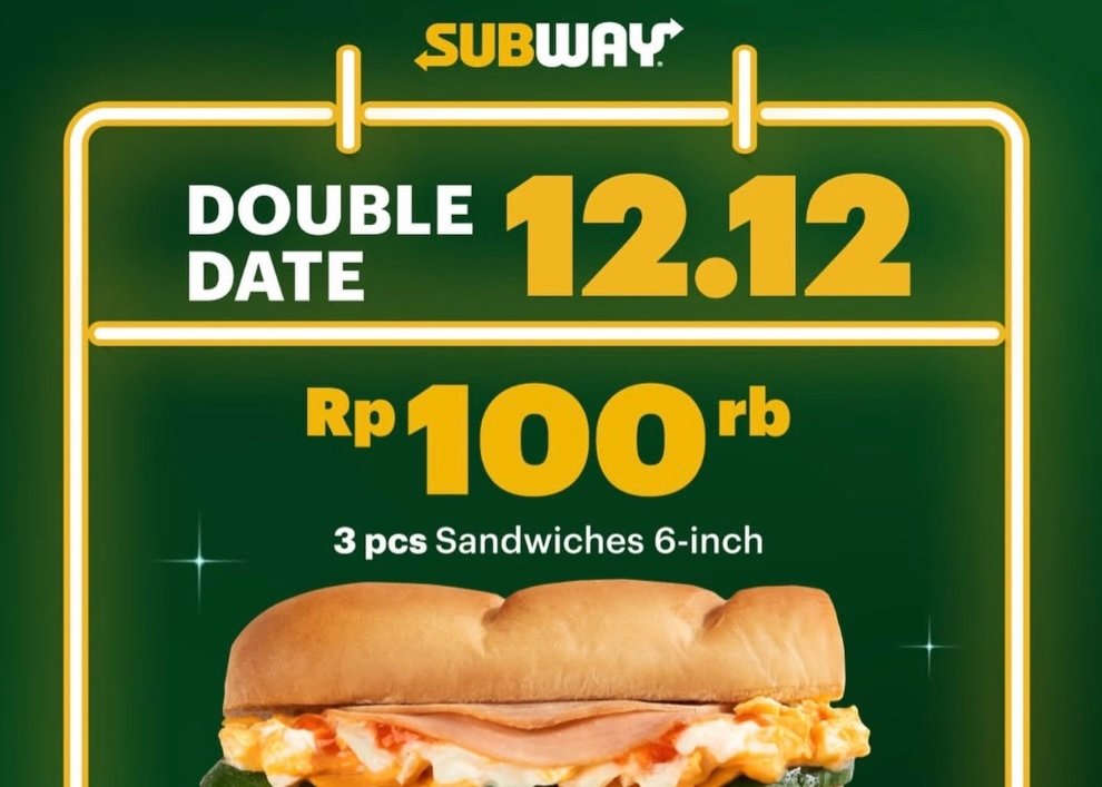 Perlu dicatat bahwa promo spesial 12.12 ini hanya berlaku pada tanggal 12 Desember 2025dan tidak tersedia di gerai Subway yang berada di area bandara.