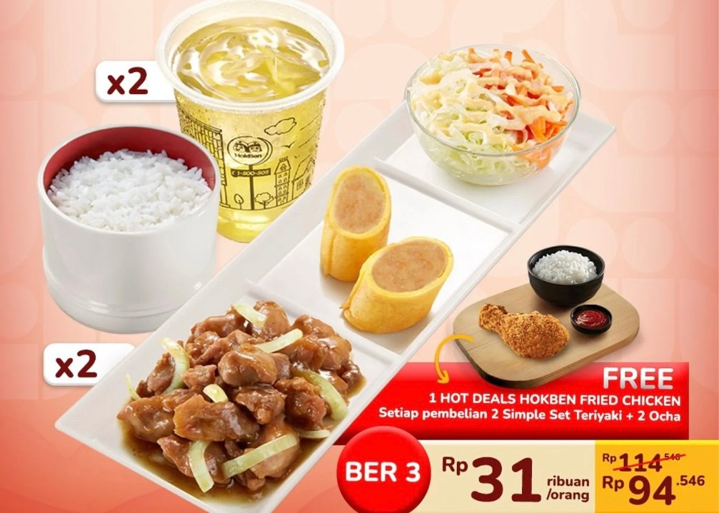 Beli 2 Simple Set Teriyaki + 2 Ocha dan GRATIS 1 Hot Deals HokBen Fried Chicken.