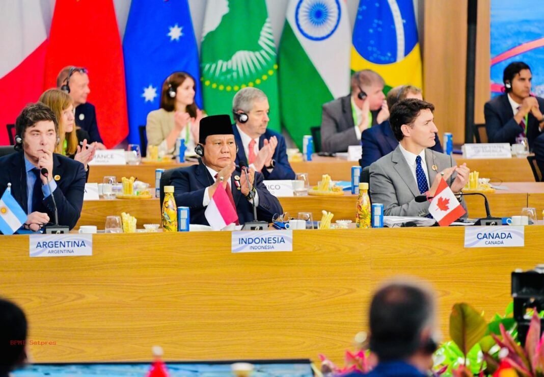 KTT G20 kali ini mengusung tema “Building a Just World and a Sustainable Planet”. Dalam dua sesi diskusi utama, Prabowo berpartisipasi aktif dalam dialog mengenai pemberantasan kelaparan dan reformasi tata kelola global.
