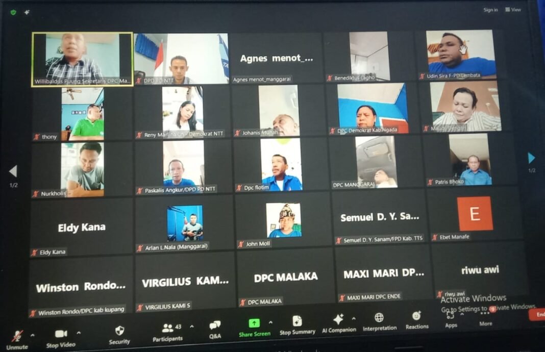 Dalam rangkaian upaya tersebut, DPD Demokrat NTT menggelar rapat virtual bertajuk Commander’s Call yang dihadiri oleh Ketua DPD Leonardus Lelo, Ketua DPC se-NTT, anggota DPRD Kabupaten, serta DPRD Provinsi.