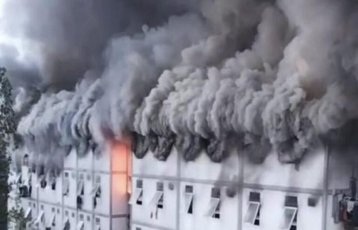 “Ini yang terbakar lantai tiga dan empat. Sedangkan lantai duanya masih belum,” ujar seseorang dalam rekaman video yang beredar luas.