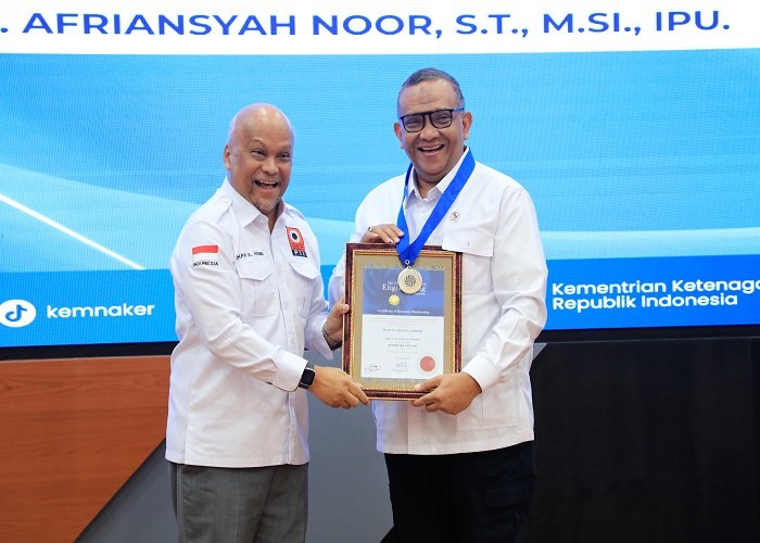 TAJUKNASIONAL.COM Wakil Menteri Ketenagakerjaan (Wamenaker) Afriansyah Noor menerima gelar AFEO Honorary Fellow dari ASEAN Federation of Engineering
