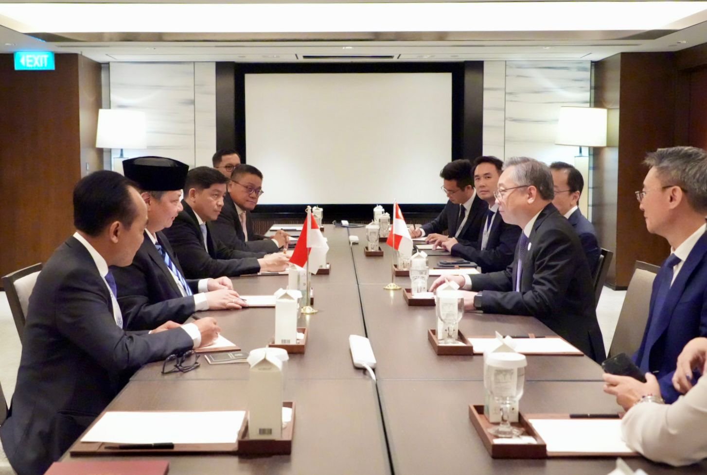 TAJUKNASIONAL.COM Dalam rangkaian kunjungan kerja di Singapura, Menteri Koordinator Bidang Perekonomian Airlangga Hartarto bertemu dengan Minister for Trade and Industry Singapura, Gan Kim Yong, Selasa (18/11). Pertemuan ini mempertegas komitmen kedua negara untuk memperdalam hubungan ekonomi, memperkuat integrasi kawasan, serta menghadapi dinamika perdagangan global dan perkembangan ekonomi digital.