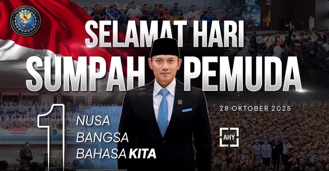 TAJUKNASIONAL.COM Dalam momentum peringatan Hari Sumpah Pemuda 2025, Menteri Koordinator Bidang Infrastruktur dan Pembangunan Kewilayahan, Agus Harimurti Yudhoyono (AHY), menyampaikan pesan inspiratif kepada generasi muda Indonesia melalui unggahan video reels di akun Instagram pribadinya, @agusyudhoyono, pada Selasa (28/10/2025).
