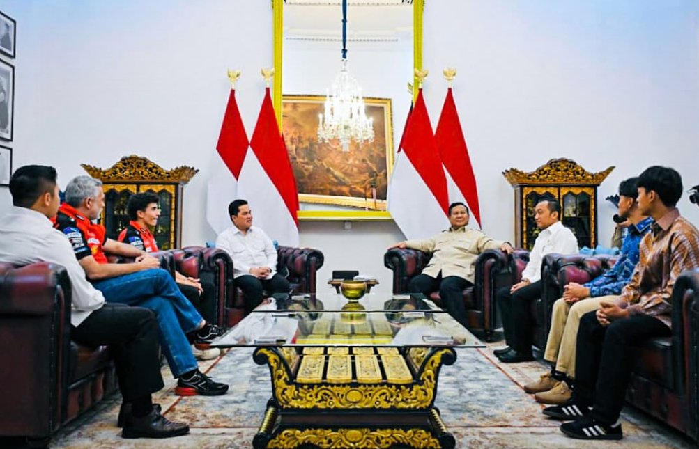 TAJUKNASIONAL.COM Presiden Prabowo Subianto menerima kunjungan juara dunia MotoGP, Marc Marquez, di Istana Kepresidenan Jakarta pada Selasa (30/9/2025).