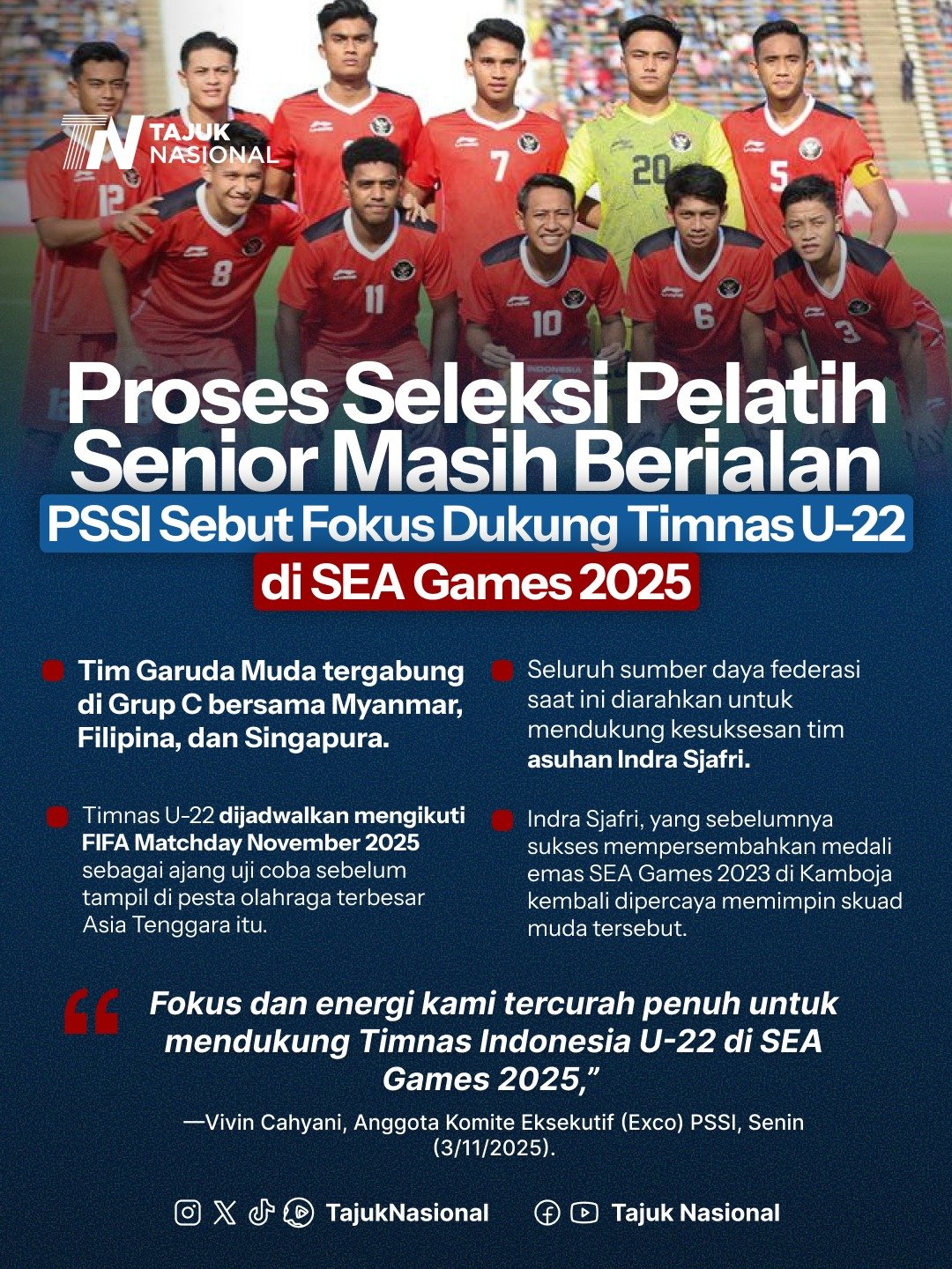 Federasi Sepak Bola Indonesia (PSSI) menegaskan bahwa fokus utama mereka saat ini adalah mendukung penuh Timnas Indonesia U-22 yang akan tampil di SEA Games 2025.